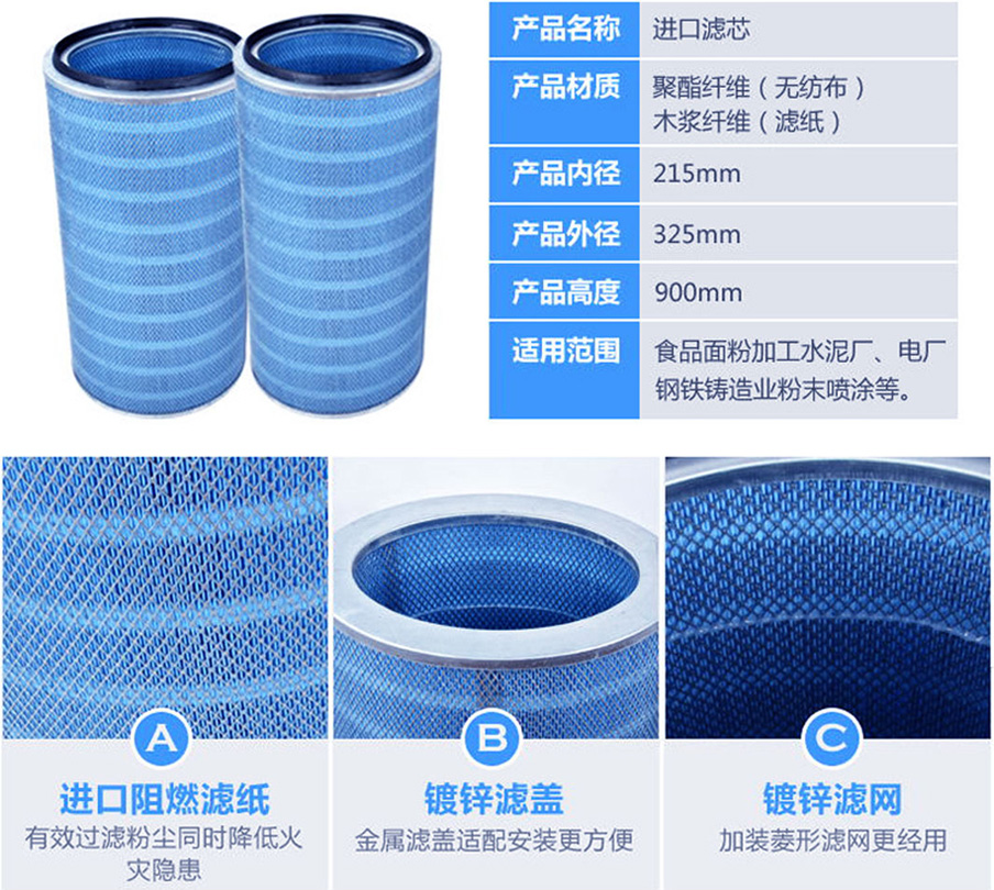 濾材可有效地把細小的粉塵顆粒過濾在濾材表面,從而加強脈沖清灰效果,延長濾筒壽命,以及具有更高的過濾效率。